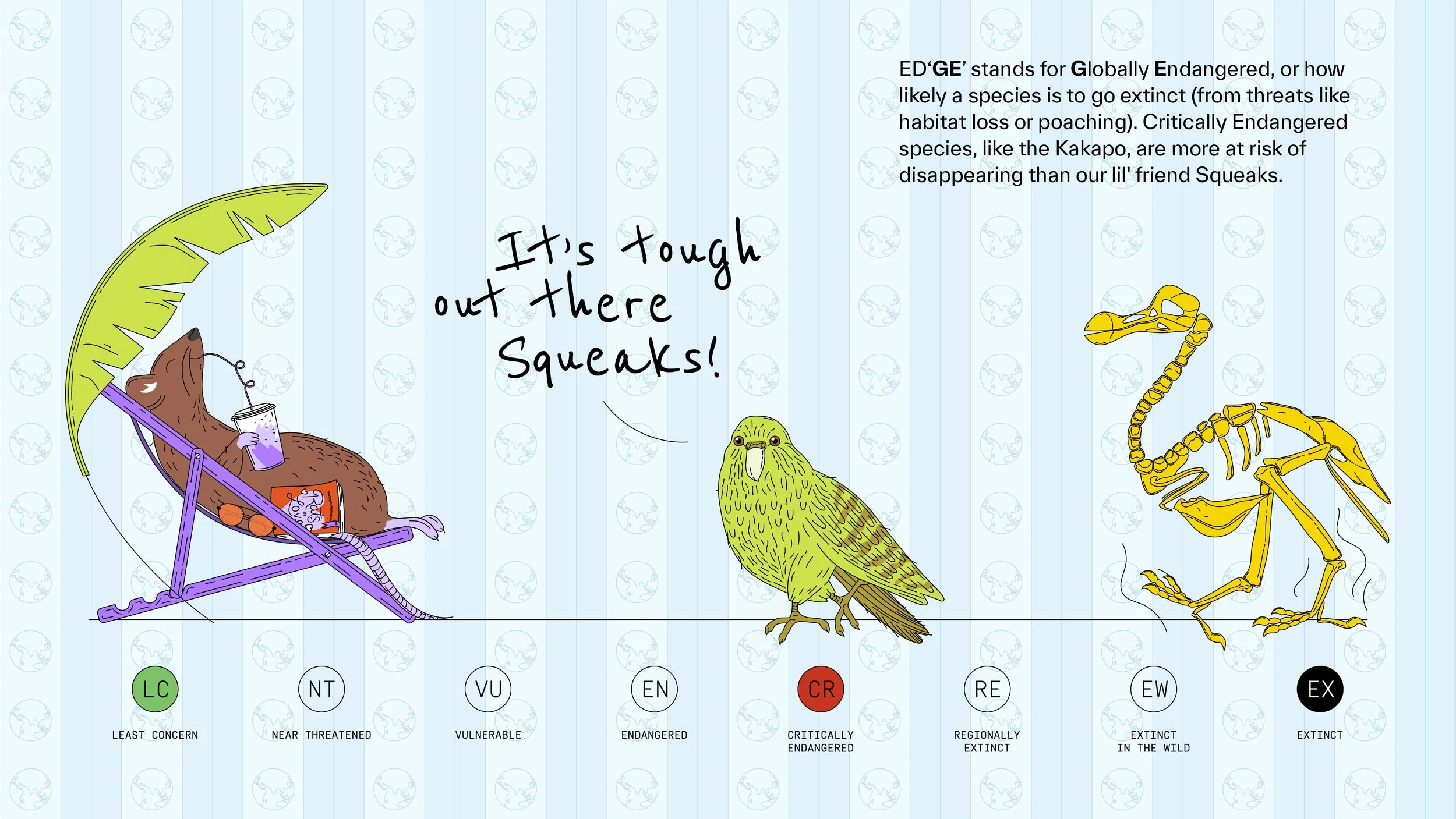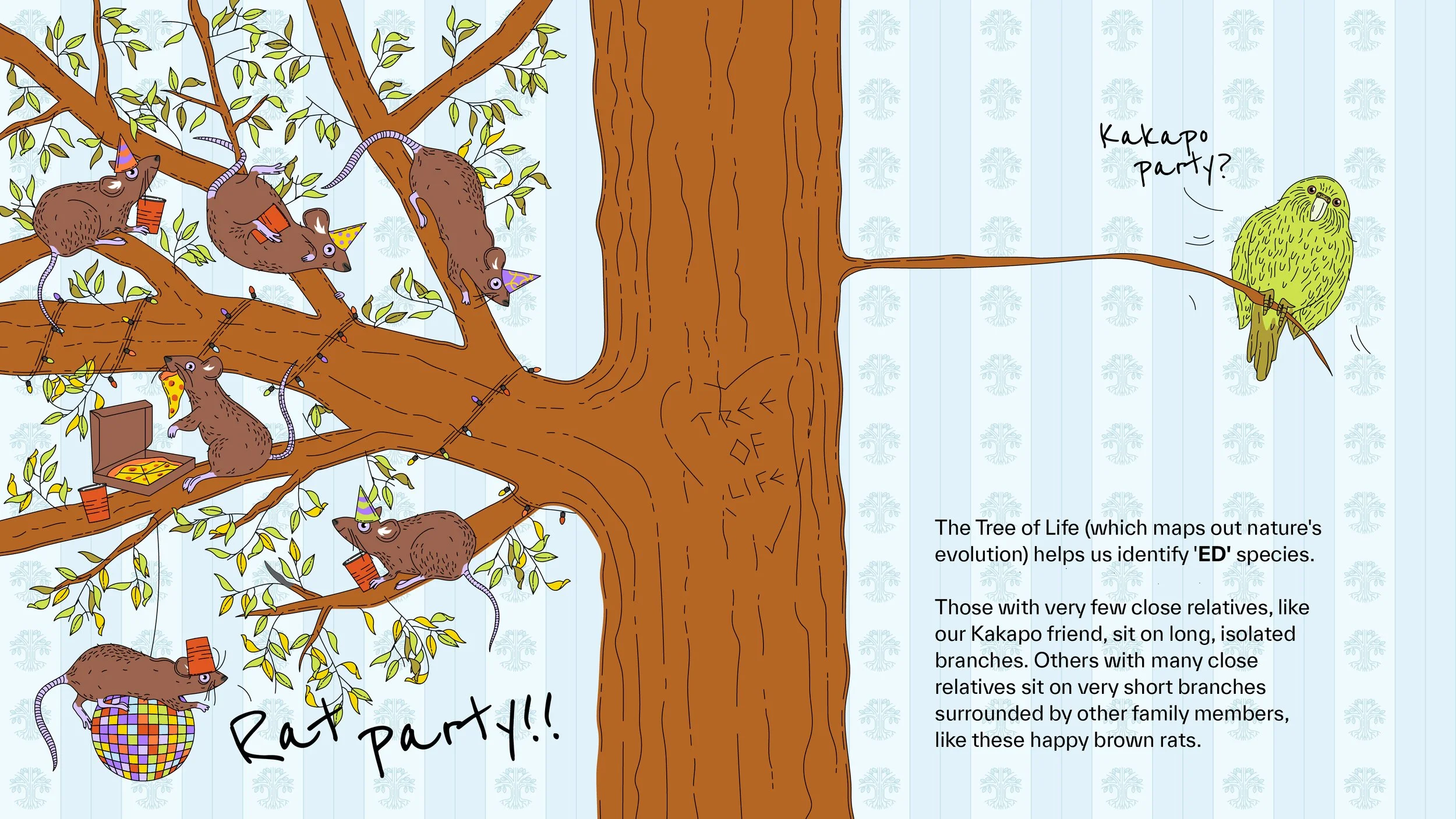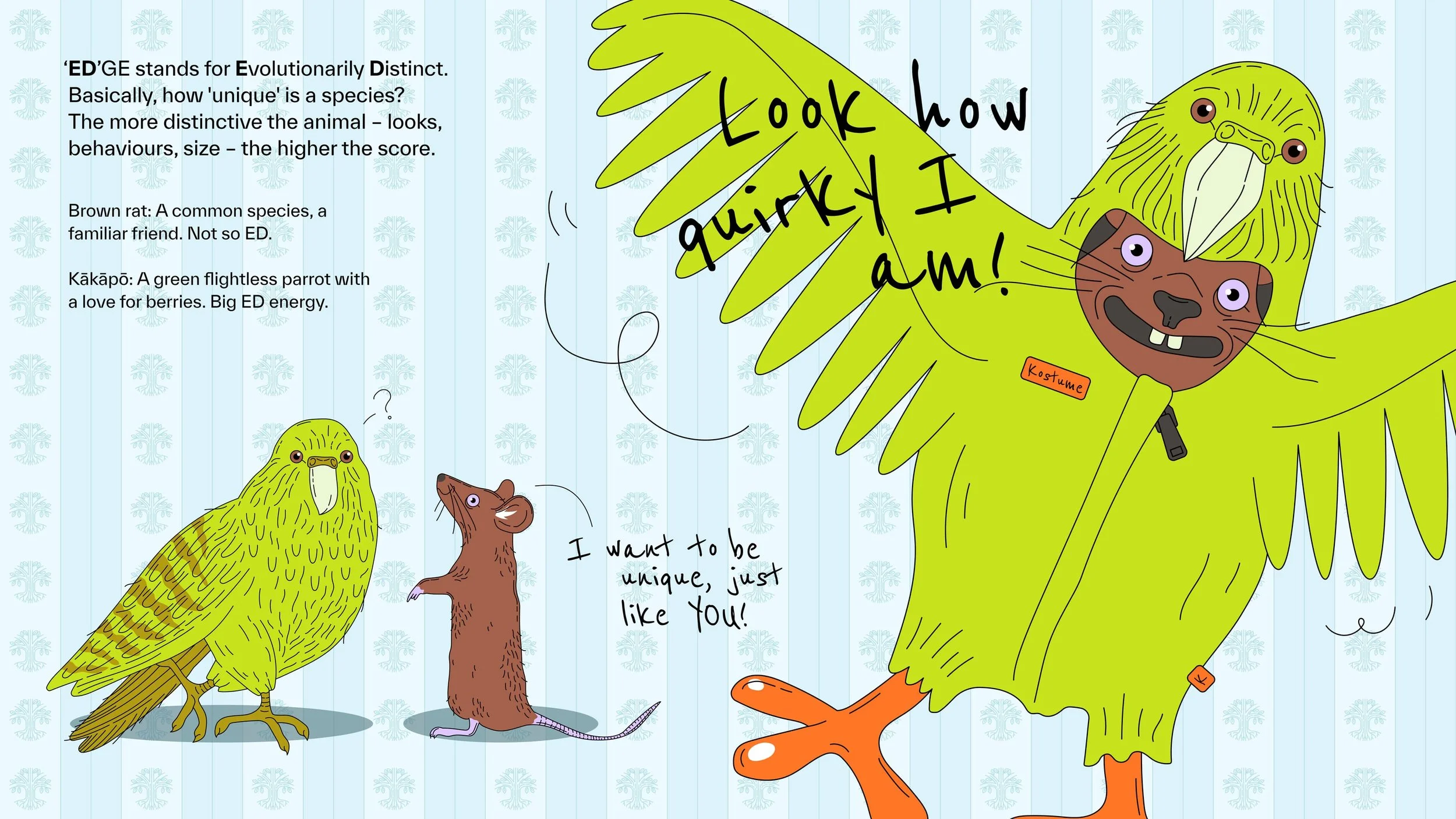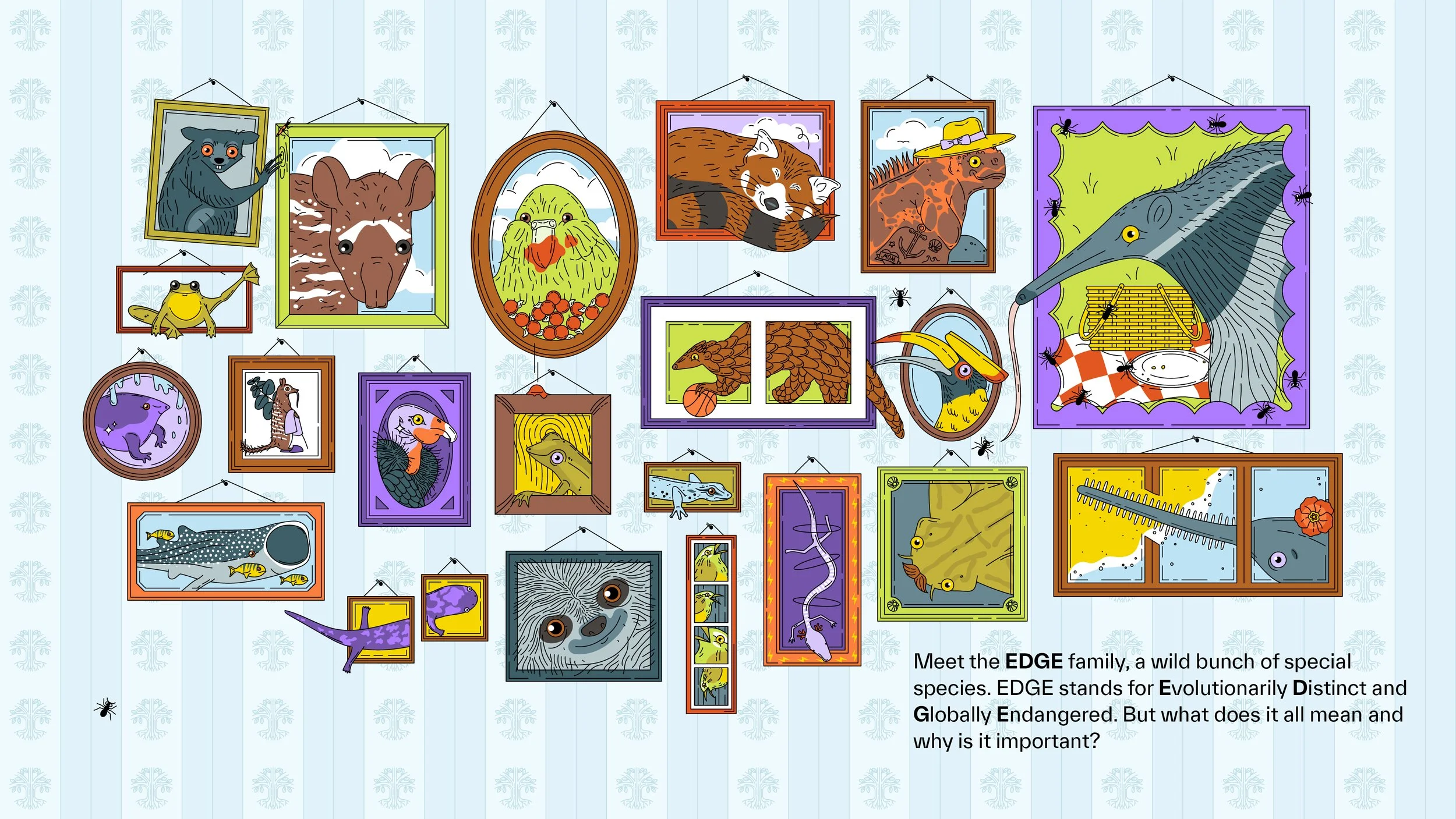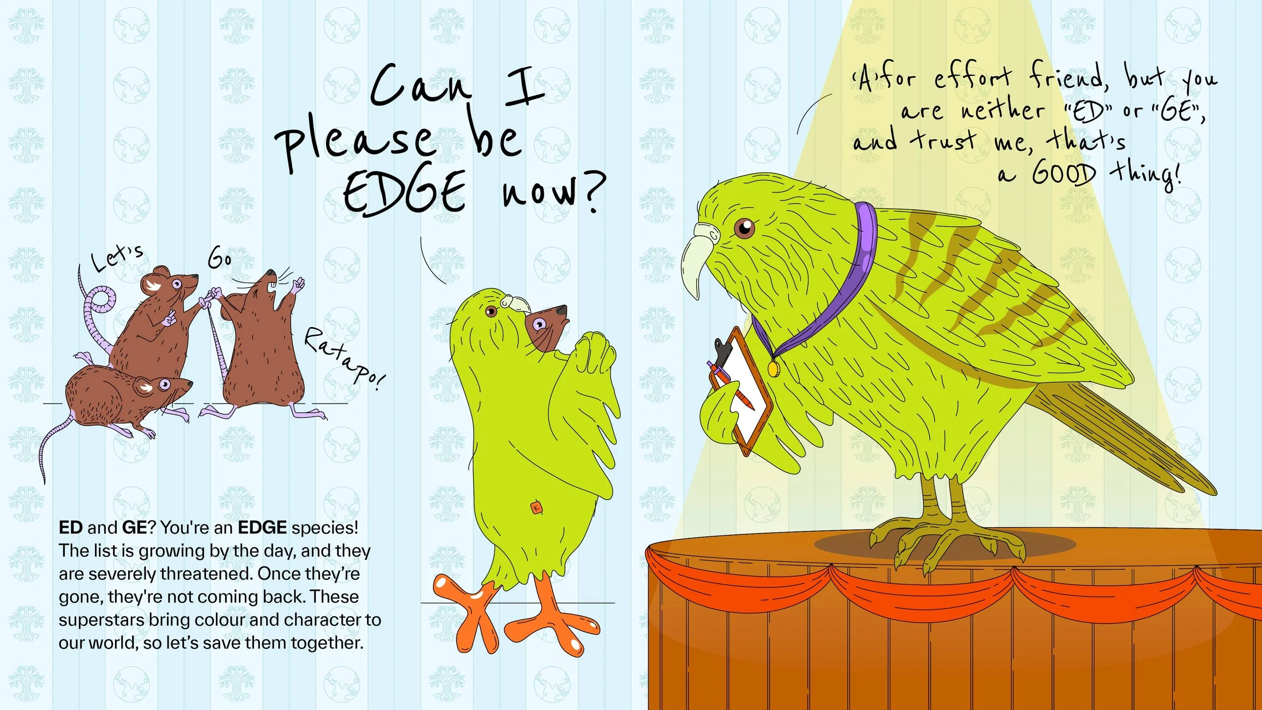 A digital comic created for On the Edge’s Natural History team, to help clearly and delightfully explain the concept of ‘EDGE’ (Evolutionarily Distinct Globally Endangered).